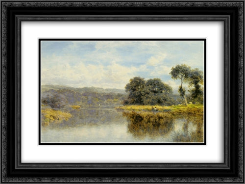 A Fine Day on the Thames 24x18 Black Ornate Wood Framed Art Print Poster with Double Matting by Leader, Benjamin Williams