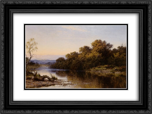 An Autumn Evening on the Lledr ' North Wales 24x18 Black Ornate Wood Framed Art Print Poster with Double Matting by Leader, Benjamin Williams