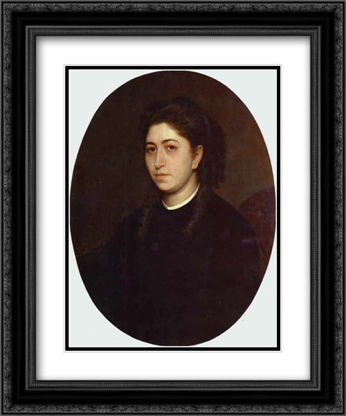 Portrait of a Young Woman Dressed in Black Velvet 20x24 Black Ornate Wood Framed Art Print Poster with Double Matting by Kramskoi, Ivan Nikolaevich