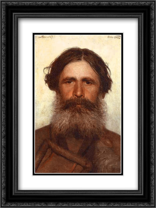 The Portrait of a Peasant 18x24 Black Ornate Wood Framed Art Print Poster with Double Matting by Kramskoi, Ivan Nikolaevich