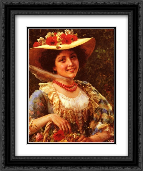 Cappello Di Paglia Papaveri 20x24 Black Ornate Wood Framed Art Print Poster with Double Matting by Andreotti, Federico