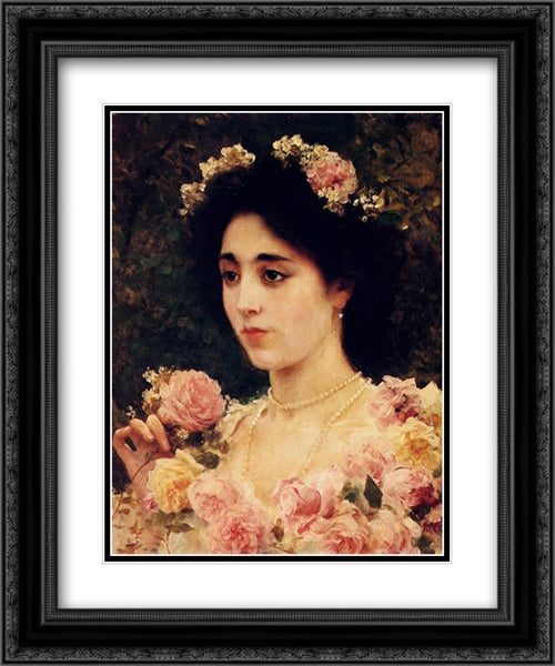 The Pink Rose 20x24 Black Ornate Wood Framed Art Print Poster with Double Matting by Andreotti, Federico