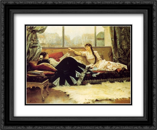 Reading Aloud 24x20 Black Ornate Wood Framed Art Print Poster with Double Matting by Stewart, Julius LeBlanc