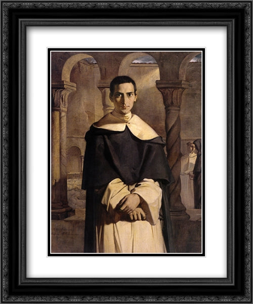 Portrait of the Reverend Father Dominique Lacordaire, of the Order of the Predicant Friars 20x24 Black Ornate Wood Framed Art Print Poster with Double Matting by Chasseriau, Theodore