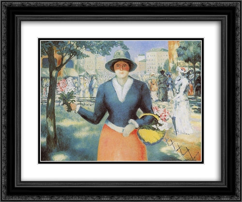 Flowergirl 24x20 Black Ornate Wood Framed Art Print Poster with Double Matting by Malevich, Kazimir