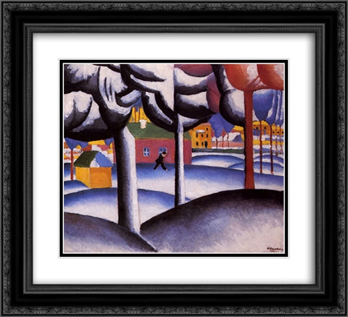 Winter Landscape 22x20 Black Ornate Wood Framed Art Print Poster with Double Matting by Malevich, Kazimir