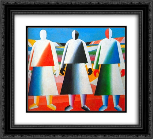 Girls in the Fields 22x20 Black Ornate Wood Framed Art Print Poster with Double Matting by Malevich, Kazimir
