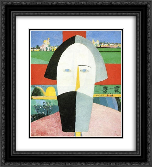Head of Peasant 20x22 Black Ornate Wood Framed Art Print Poster with Double Matting by Malevich, Kazimir