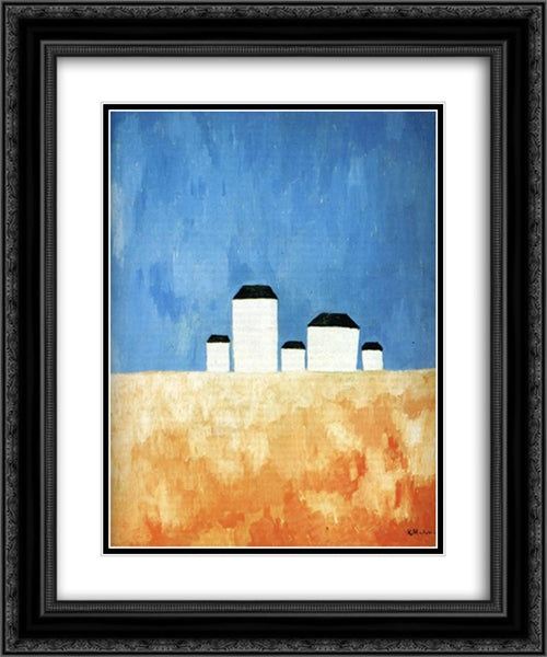 Landscape with Five Houses 20x24 Black Ornate Wood Framed Art Print Poster with Double Matting by Malevich, Kazimir