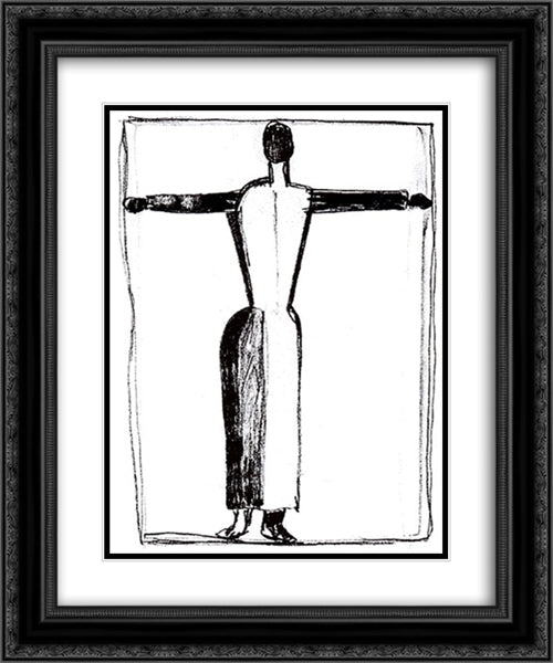 Figure in the form of a cross with raised hands 20x24 Black Ornate Wood Framed Art Print Poster with Double Matting by Malevich, Kazimir