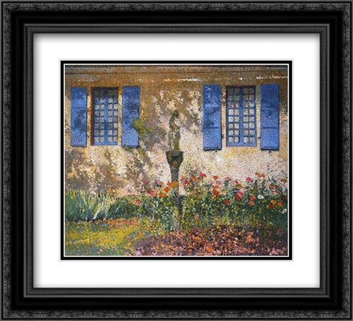The windows of Marquayrol 22x20 Black Ornate Wood Framed Art Print Poster with Double Matting by Martin, Henri
