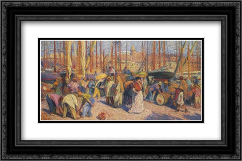 The Port of Marseilles 24x16 Black Ornate Wood Framed Art Print Poster with Double Matting by Martin, Henri