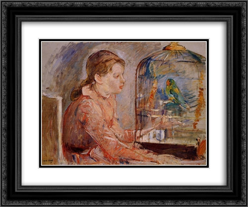 Young Girl and the Budgie 24x20 Black Ornate Wood Framed Art Print Poster with Double Matting by Morisot, Berthe