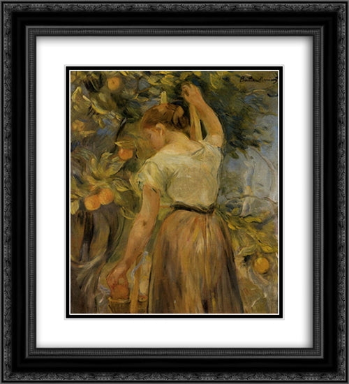 Young Woman Picking Oranges 20x22 Black Ornate Wood Framed Art Print Poster with Double Matting by Morisot, Berthe