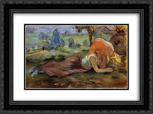 Shepherdess Resting 24x18 Black Ornate Wood Framed Art Print Poster with Double Matting by Morisot, Berthe