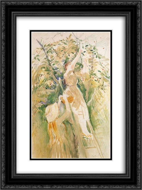 The Cherry Tree (study) 18x24 Black Ornate Wood Framed Art Print Poster with Double Matting by Morisot, Berthe
