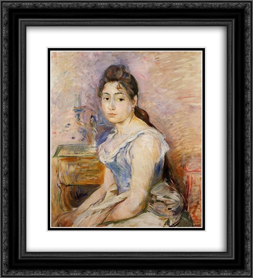 Young Woman in a Blue Blouse 20x22 Black Ornate Wood Framed Art Print Poster with Double Matting by Morisot, Berthe