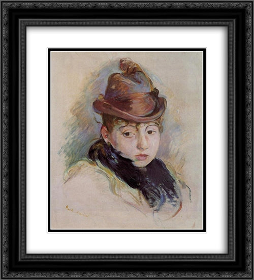 Young Woman in a Hat (Henriette Patte) 20x22 Black Ornate Wood Framed Art Print Poster with Double Matting by Morisot, Berthe