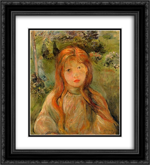 Little Girl at Mesnil 20x22 Black Ornate Wood Framed Art Print Poster with Double Matting by Morisot, Berthe