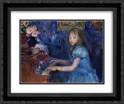 Lucie Leon at the Piano 24x20 Black Ornate Wood Framed Art Print Poster with Double Matting by Morisot, Berthe