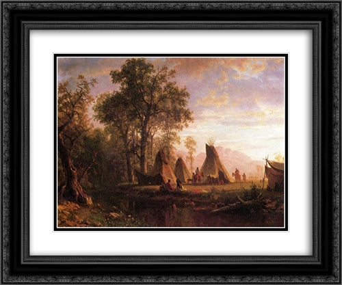 Indian Encampment, Late Afternoon 24x20 Black Ornate Wood Framed Art Print Poster with Double Matting by Bierstadt, Albert
