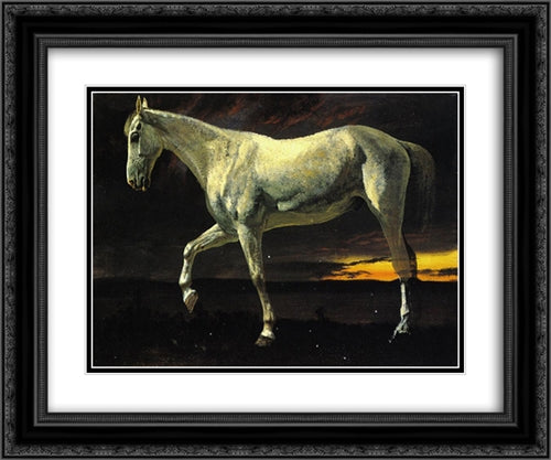 White Horse and Sunset 24x20 Black Ornate Wood Framed Art Print Poster with Double Matting by Bierstadt, Albert