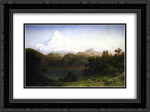 Mount Hood, Oregon 24x18 Black Ornate Wood Framed Art Print Poster with Double Matting by Bierstadt, Albert