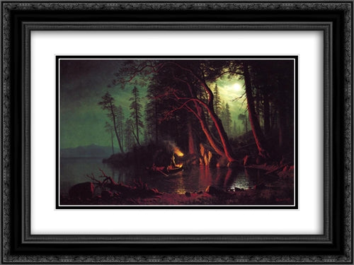 Lake Tahoe, Spearing Fish by Torchlight 24x18 Black Ornate Wood Framed Art Print Poster with Double Matting by Bierstadt, Albert