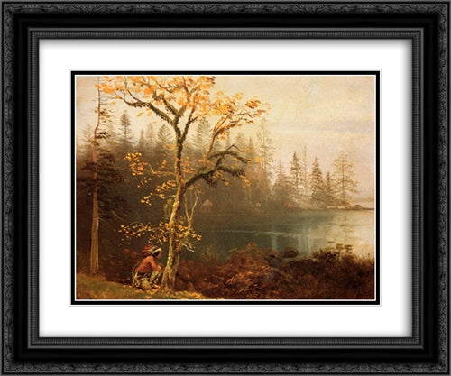 Indian Scout 24x20 Black Ornate Wood Framed Art Print Poster with Double Matting by Bierstadt, Albert