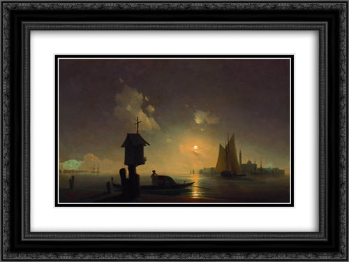 Sea view with chapel 24x18 Black Ornate Wood Framed Art Print Poster with Double Matting by Aivazovsky, Ivan