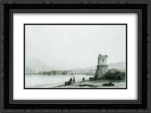 The tower of Genoa 24x18 Black Ornate Wood Framed Art Print Poster with Double Matting by Aivazovsky, Ivan