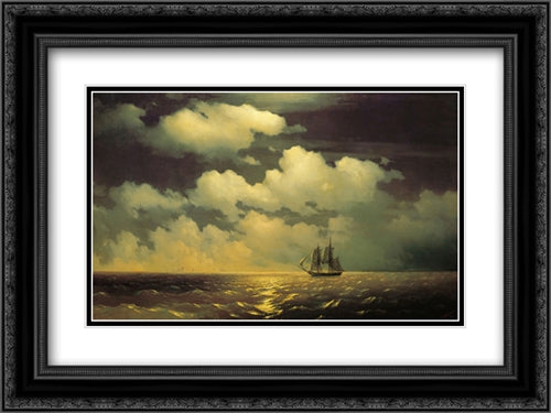 Meeting of the Brig Mercury with the Russian Squadron After the Defeat of Two Turkish Battleships 24x18 Black Ornate Wood Framed Art Print Poster with Double Matting by Aivazovsky, Ivan