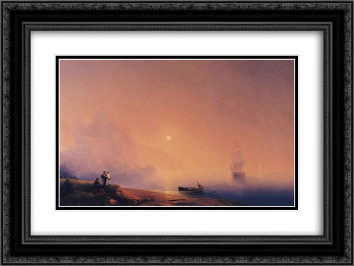 Crimean Tartars on the Sea Shore 24x18 Black Ornate Wood Framed Art Print Poster with Double Matting by Aivazovsky, Ivan