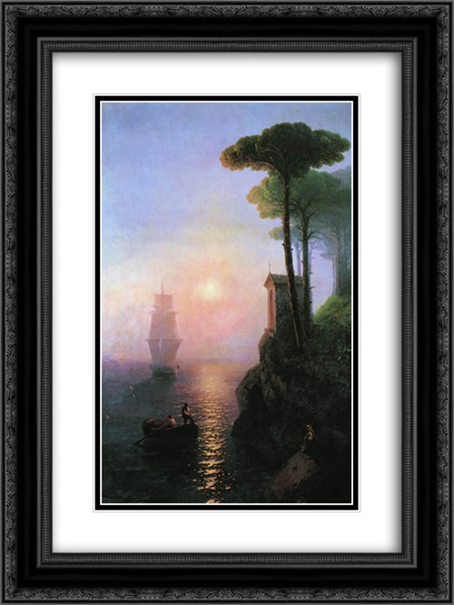 Misty morning in Italy 18x24 Black Ornate Wood Framed Art Print Poster with Double Matting by Aivazovsky, Ivan