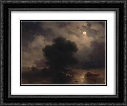 Night in the Ukraine 24x20 Black Ornate Wood Framed Art Print Poster with Double Matting by Aivazovsky, Ivan