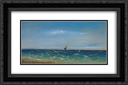 Sailing in the sea 24x16 Black Ornate Wood Framed Art Print Poster with Double Matting by Aivazovsky, Ivan