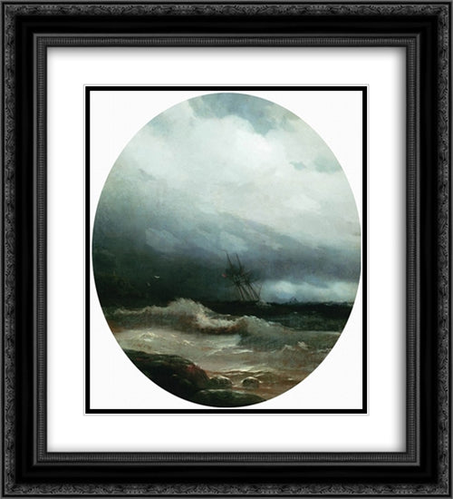 Ship in a storm 20x22 Black Ornate Wood Framed Art Print Poster with Double Matting by Aivazovsky, Ivan