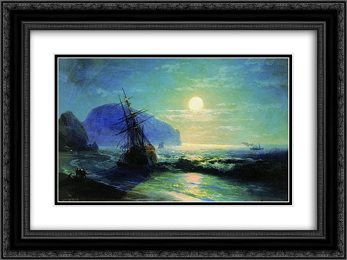 Shipwreck near Gurzuf 24x18 Black Ornate Wood Framed Art Print Poster with Double Matting by Aivazovsky, Ivan
