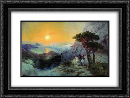 Pushkin at the top of the Ai-Petri Mountain at sunrise 24x18 Black Ornate Wood Framed Art Print Poster with Double Matting by Aivazovsky, Ivan