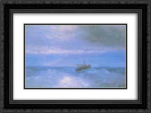The Caucasian Range from the Sea 24x18 Black Ornate Wood Framed Art Print Poster with Double Matting by Aivazovsky, Ivan
