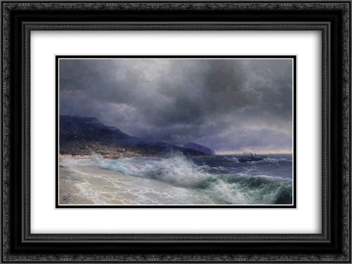 Yalta 24x18 Black Ornate Wood Framed Art Print Poster with Double Matting by Aivazovsky, Ivan