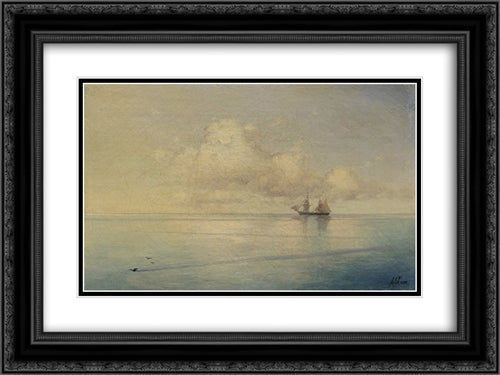 Landscape with a sailboat 24x18 Black Ornate Wood Framed Art Print Poster with Double Matting by Aivazovsky, Ivan