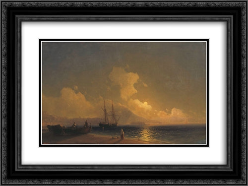 Sea at night 24x18 Black Ornate Wood Framed Art Print Poster with Double Matting by Aivazovsky, Ivan
