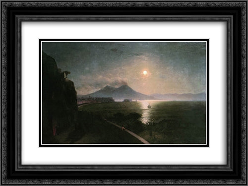 Vesuvius 24x18 Black Ornate Wood Framed Art Print Poster with Double Matting by Aivazovsky, Ivan