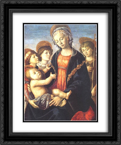 The Virgin and Child with Two Angels and St. John the Baptist 20x24 Black Ornate Wood Framed Art Print Poster with Double Matting by Botticelli, Sandro