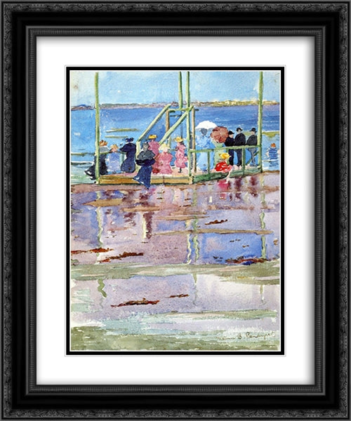Float at Low Tide, Revere Beach (also known as People at the Beach) 20x24 Black Ornate Wood Framed Art Print Poster with Double Matting by Prendergast, Maurice