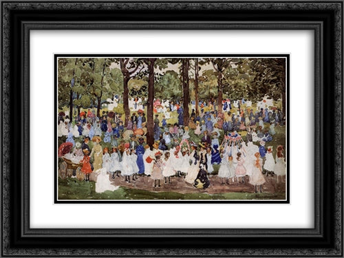 May Day, Central Park (also known as Central Park or Children in the Park) 24x18 Black Ornate Wood Framed Art Print Poster with Double Matting by Prendergast, Maurice