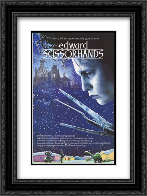 Edward Scissorhands (Movie Sheet) 18x24 Black Ornate Wood Framed Movie Poster with Double Matting