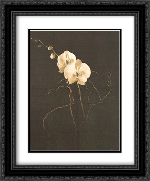 White Phalaenopsis Orchid 2x Matted 20x24 Black Ornate Wood Framed Art Print Poster with Double Matting by Majchrowicz, Alan