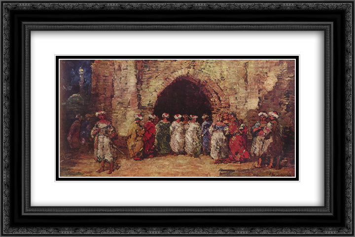 Oriental scene 24x16 Black Ornate Wood Framed Art Print Poster with Double Matting by Monticelli, Adolphe Joseph Thomas